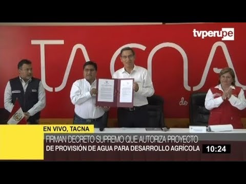 El presidente de la República, Martín Vizcarra, firmó el Decreto Supremo que autoriza la transferencia de partidas para la provisión de agua que impulsará desarrollo agrícola en el valle de Tacna, Villavilani II Fase I.