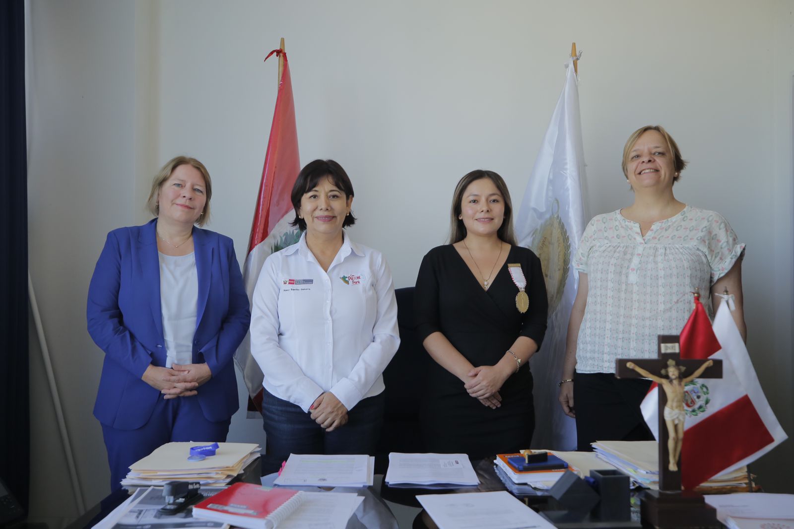 Previamente, la titular del MIMP se reunió con las embajadoras de Países Bajos, Nathalie Lintvelt y Alemania Sabine Bloch y la fiscal Karen Torres Godoy, representante del Ministerio Público en dicha región; con la finalidad de fortalecer la atención oportuna ante hechos de violencia hacia mujeres e integrantes del grupo familiar en la región.