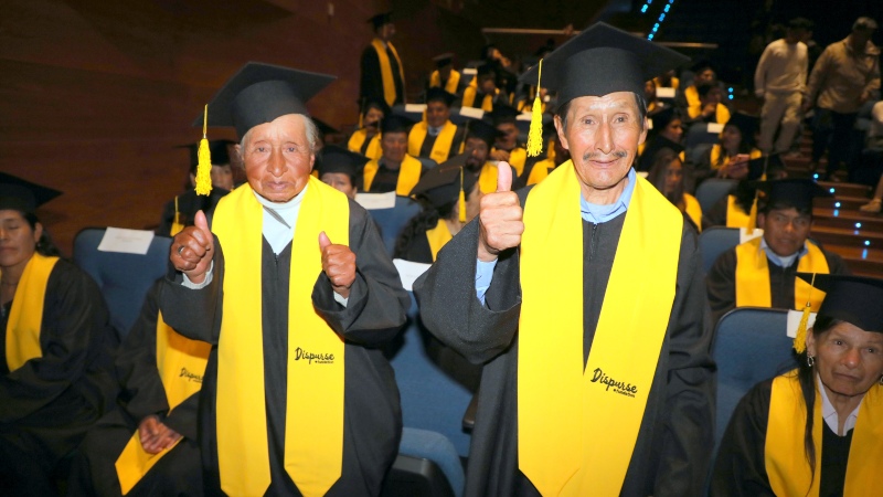 Con la tradicional toga y el birrete, Rodrigo Chávez Callupe de 80 años, un usuario del programa Pensión 65 diagnosticado con párkinson, recibió su diploma de graduación al culminar el programa de alfabetización digital, promovido por esta entidad del Ministerio de Desarrollo e Inclusión Social (Midis), la Fundación Dispurse y los gobiernos locales.