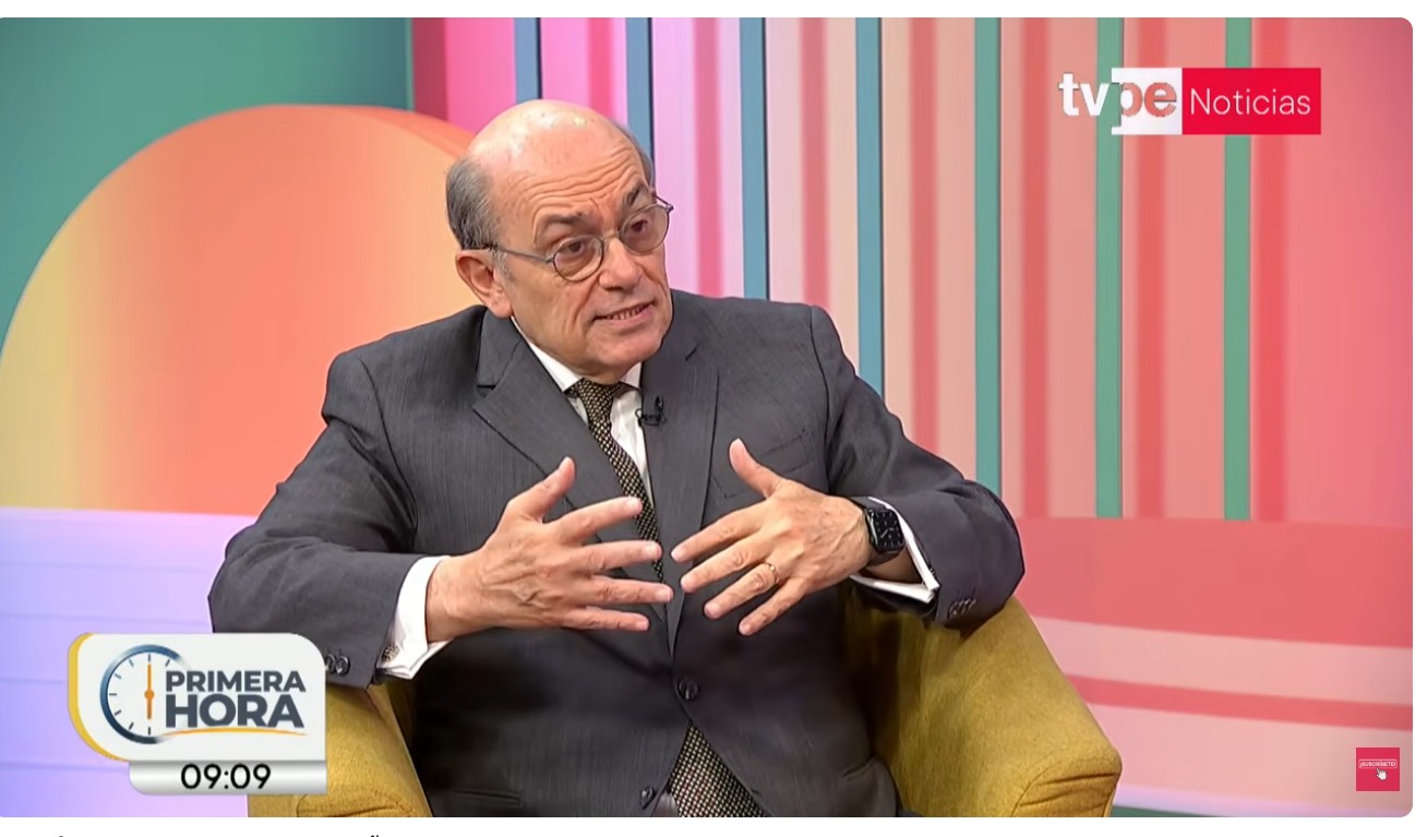 En los estudios de TVPerú Noticias, el canciller Hugo de Zela. Foto: TVPerú Noticias.