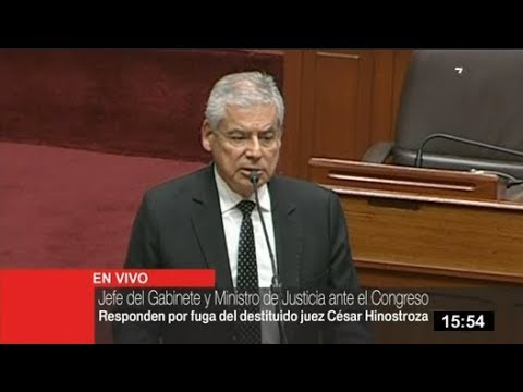 El presidente del Consejo de Ministros, César Villanueva, se presentó en el Congreso de la República para dar a conocer que se han activado los mecanismos de alerta roja que permitan la captura del prófugo exmagistrado César Hinostroza en España.