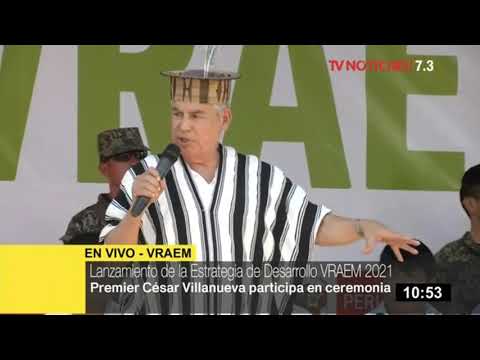 El presidente del Consejo de Ministros, César Villanueva, participa en ceremonia del lanzamiento de la Estrategia de Desarrollo VRAEM 2021, en el distrito de Anchihuay, en Ayacucho. Donde adujo que el gobierno “se ha propuesto trabajar con todos los alcaldes” sin la necesidad de que vayan a Lima, como claro ejemplo de un plan descentralista.