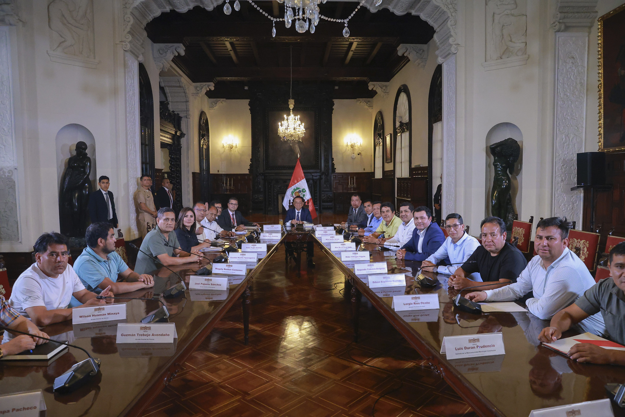 Presidente José María Balcázar reafirma continuidad de obras y proyectos en reunión con la AMPE. Foto: Presidencia de la República.