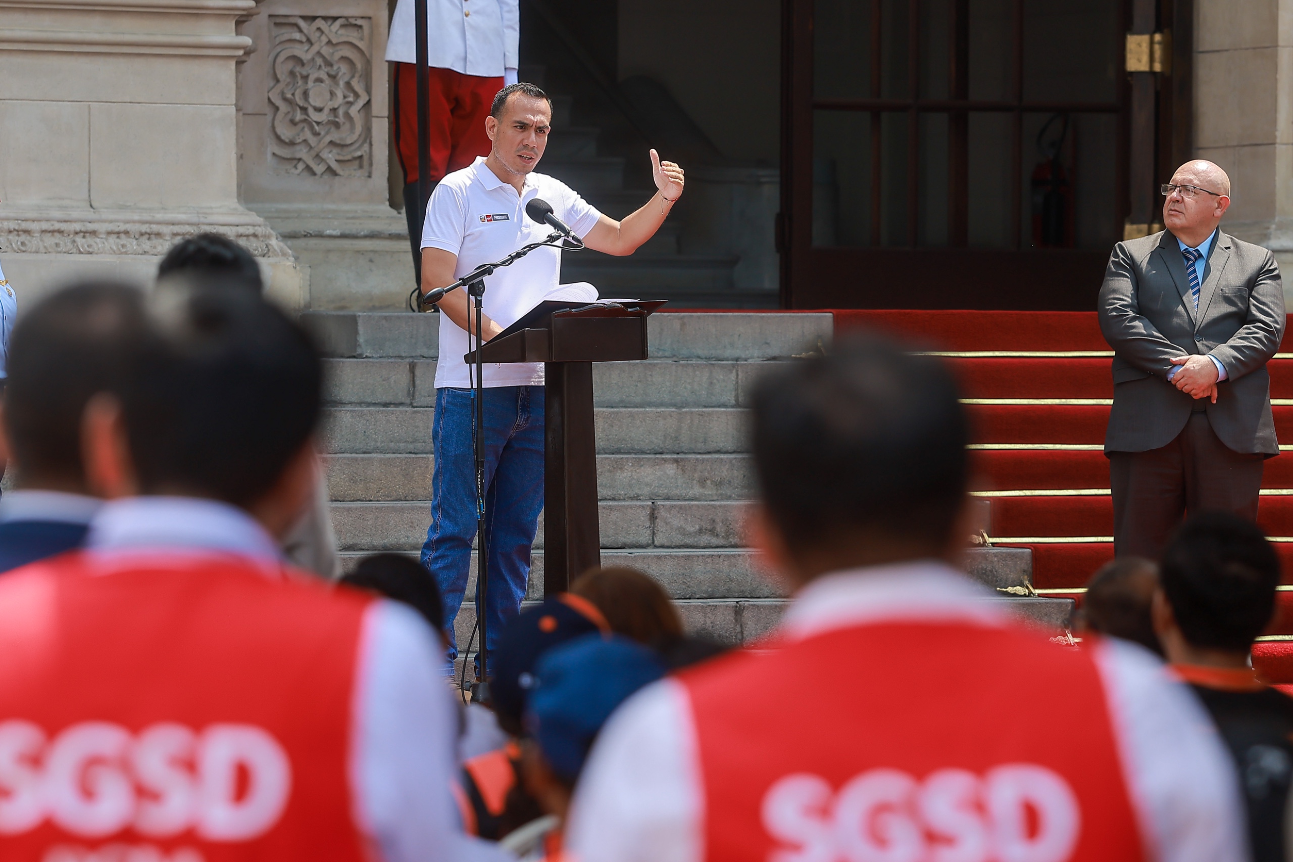 El presidente de la república, José Jerí, tomó hoy juramento a voluntarios en emergencia y rehabilitación (VER), destacando la vocación de servicio al país y al prójimo de parte de sus integrantes.