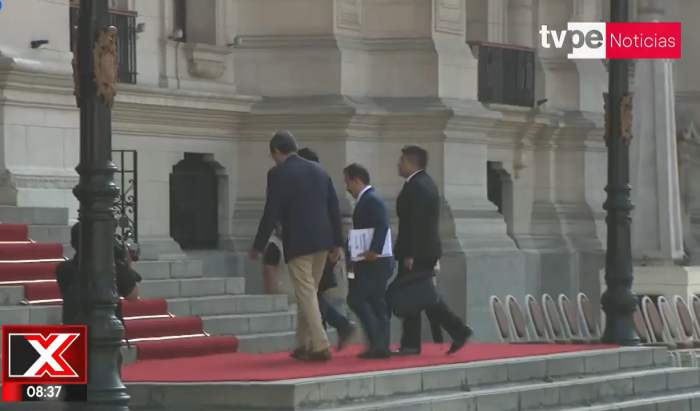 Según imágenes de TVPerú Noticias, se observó el ingreso del fiscal de la nación, Tomás Aladino Gálvez Villegas, al Patio de Honor de Palacio de Gobierno, alrededor de las 9:00 a. m.