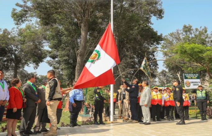 El presidente José Jerí afirmó que se evaluará medidas para fortalecer la seguridad ciudadana con una supervisión de las fronteras del país. Declaró luego de izar la bandera en Lurigancho-Chosica. Foto: Presidencia.