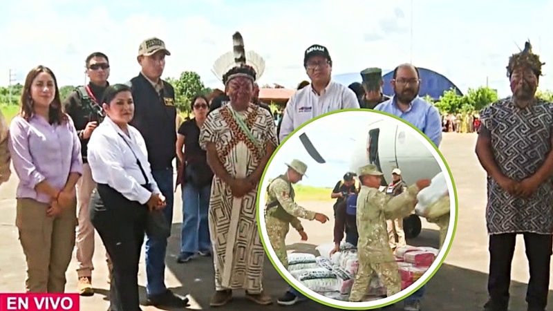 En Ucayali, el presidente José Jerí Oré y más autoridades entregan suministros de primera necesidad tras las inundaciones por lluvias torrenciales. Foto: captura TVPerú Noticias.
