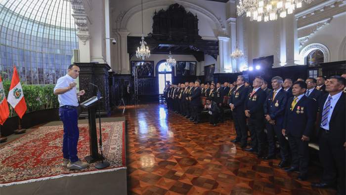 El mandatario brindó estas declaraciones tras recibir el saludo protocolar de los representantes de la Federación Nacional de Defensores de la Patria del Perú en Palacio de Gobierno.
