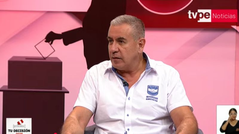 Wolfgang Mario Grozo Costa del Partido Integridad Democrática participó en el programa Tu decisión 2026, donde expuso sus propuestas de gobierno. Foto: TVPerú Noticias.