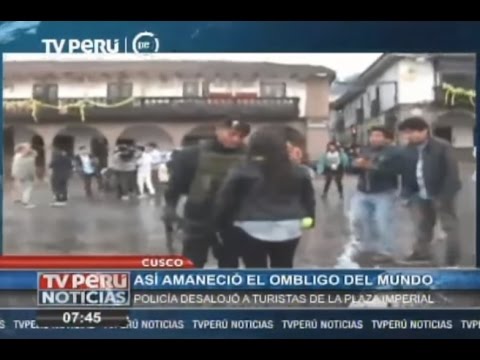 Año Nuevo: Policía desaloja a turistas ebrios de Plaza de Armas de Cusco