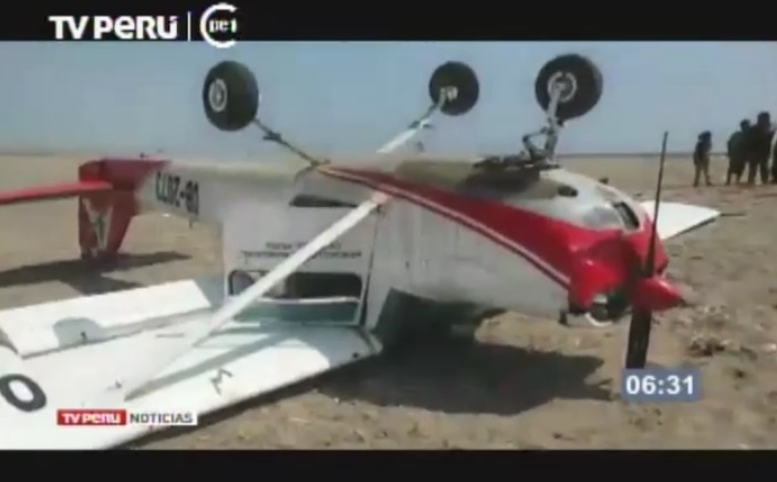 Al parecer una falla mecánica obligó al piloto realizar un aterrizaje forzoso que originó que la nave termine con las llantas hacia arriba.