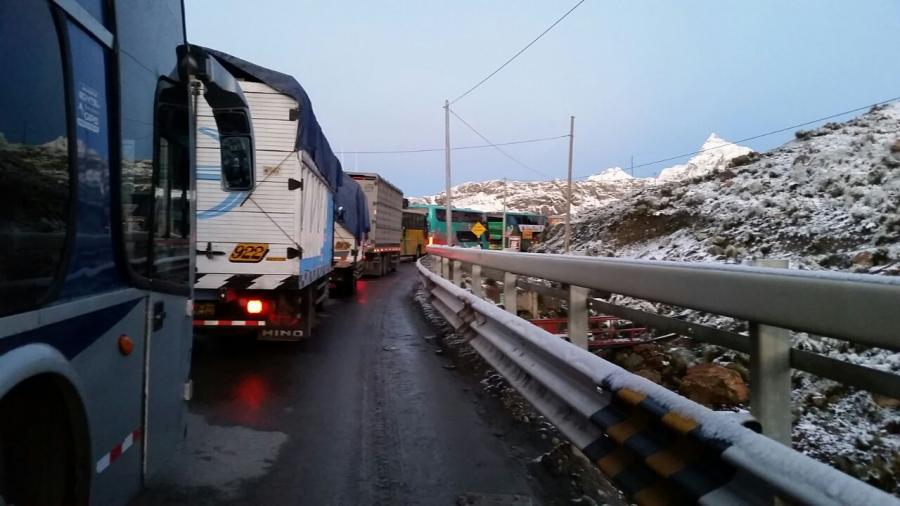 Se registra gran congestión vehicular entre los kilómetros 130 y 150 de la Carretera Central luego de la intensa nevada que cayó durante toda la madrugada.