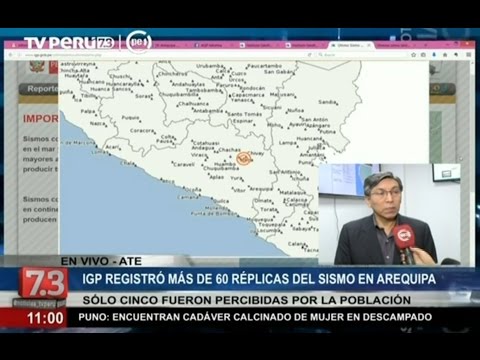 Más de 60 réplicas, de las cuales alrededor de 6 han sido percibidas por la población, se han registrado hasta el momento del sismo de 5.2 grados en la escala de Richter ocurrido en la provincia arequipeña de Caylloma. Así lo señaló Hernando Tavera, jefe de la Unidad de Sismología del Instituto Geofísico del Perú (IGP).