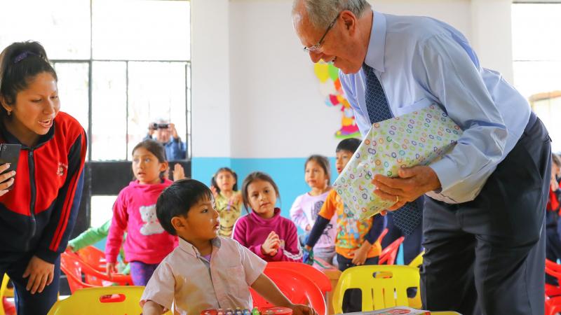 El presidente, Pedro Pablo Kuczynski, saludó personalmente al niño Piero Santa Cruz Campos, quien hoy cumple 3 años de edad, en una fecha que coincide con el cumpleaños del Mandatario de la República.
