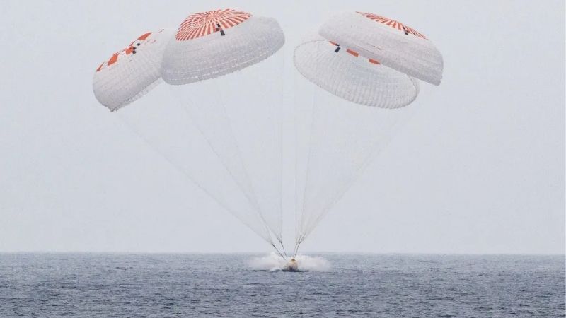 La nave Dragon de SpaceX regresó a tierra con cuatro tripulantes después de casi cinco meses en la Estación Espacial Internacional. Foto: NASA.