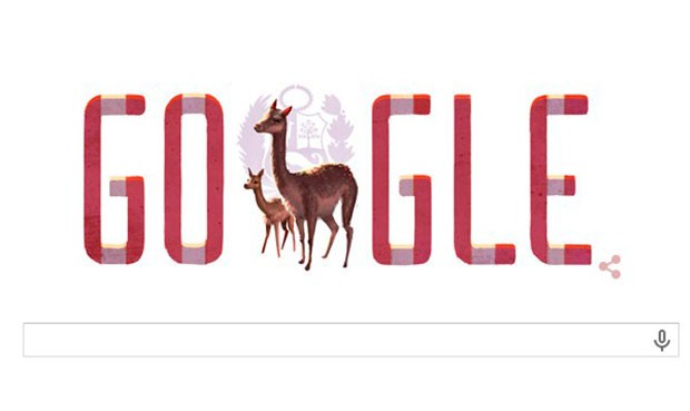 En la imagen se puede apreciar la palabra Google con los colores de nuestra bandera y en el medio la figura de dos vicuñas.