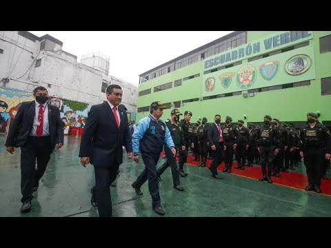El presidente de la república, Pedro Castillo, realizó inspección a las instalaciones de la División de Operaciones Especiales Escuadrón Verde, junto al titular del Mininter, Willy Huerta.