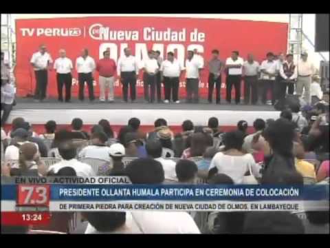 El presidente de la República, Ollanta Humala Tasso, participó tarde en la ceremonia de colocación de la primera piedra para la creación de la Nueva Ciudad de Olmos, en el distrito de Olmos, en la región Lambayeque.
