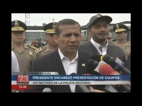 El presidente de la República, Ollanta Humala Tasso, y el ministro del Interior, José Luis Pérez Guadalupe, presidieron la ceremonia de presentación y entrega de equipos antimotines adquiridos para la Policía Nacional del Perú (PNP).