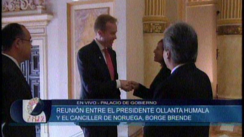 El presidente de la República, Ollanta Humala Tasso, se reunió esta mañana en Palacio de Gobierno con el ministro de Relaciones Exteriores de Noruega, Borge Brende, quien se encuentra en nuestro país para participar en las Reuniones Anuales del Banco Mundial y el Fondo Monetario Internacional.