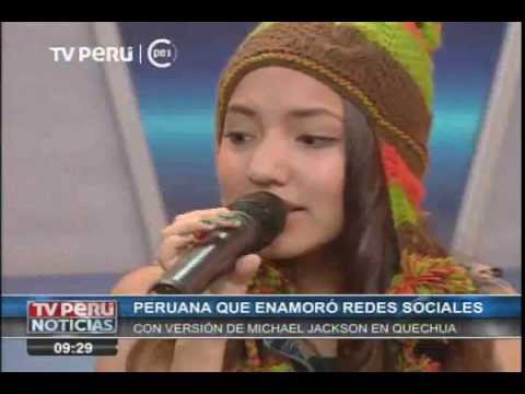 La cantante ayacuchana Renata Flores Rivera, quien causó sensación al interpretar el tema de Michael Jackson, "The way you make me feel", en versión quechua, visitó esta mañana los estudios de TV Perú Noticias.