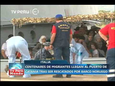 Mediterráneo: migrantes rescatados de barco noruego llegan a puerto de Catania