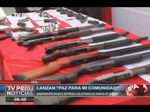 Como parte de una campaña nacional de pacificación y de entrega voluntaria de armas de fuego que no tienen autorización, la Policía Nacional recibió en la ciudad de Ica 24 armas de fuego y 35 cartuchos de dinamita.