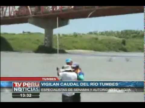Diversos organismos del Estado realizaron la medición del caudal del río Tumbes con el objetivo de conocer el volumen de agua que trae el río durante las lluvias por el Fenómeno El Niño.
