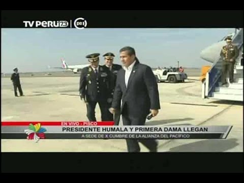 El presidente Ollanta Humala arribó esta tarde al aeropuerto de Pisco, acompañado de la Primera Dama, Nadine Heredia, para participar en la X Cumbre de la Alianza del Pacífico, que se lleva a cabo en Paracas.