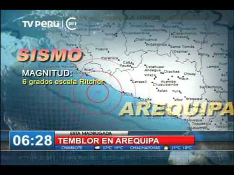 Un movimiento telúrico de 6 grados de magnitud en la escala de Richter se registró a las 04:09 horas local de hoy en el departamento de Arequipa, reportó el Instituto Geofísico del Perú (IGP).