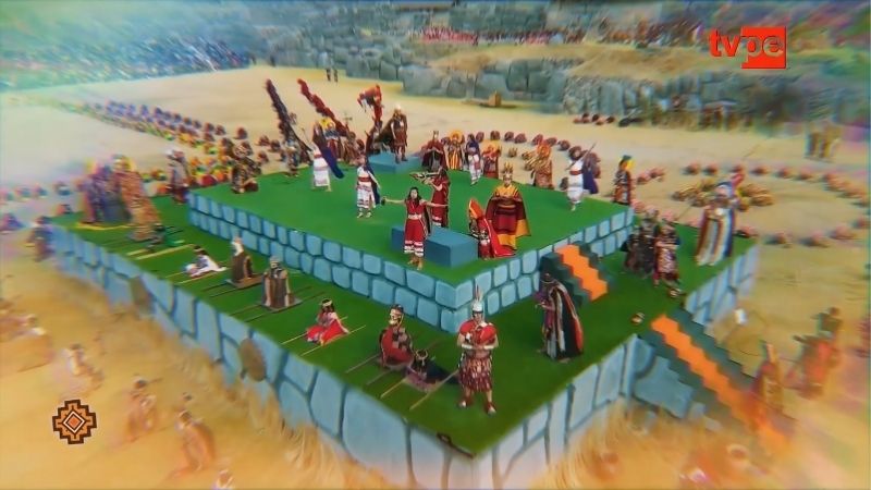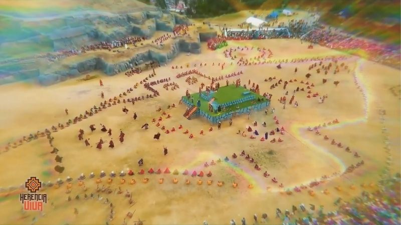 Algunas locaciones, como Sacsayhuamán, ofrecen una escenografía natural única. También la plaza de Armas y el Qorikancha se transforman con elementos que buscan resaltar la cultura ancestral frente a la arquitectura colonial. “Solamente este elemento de poner el sol de echenique ahí, en la parte posterior, luchaba contra el barroco colonial español y planteaba nuestro símbolo de oro”, indicó.