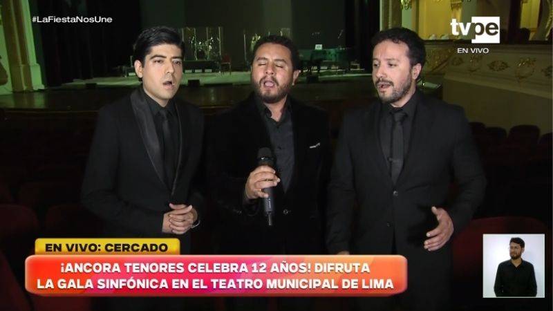“Nosotros somos Ancora Tenores, orgullosamente peruanos, y para nosotros una alegría inmensa, una emoción grande poder hacerlo aquí, en Lima, en el Teatro Municipal, con una gala sinfónica increíble”, expresó Jonatán Martínez, integrante del trío.