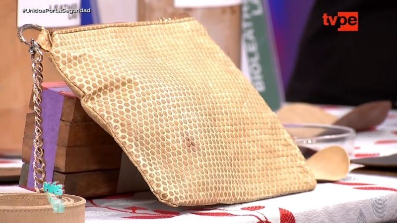 Durante la entrevista, Fátima mostró carteras y correas que, aunque parecen de cuero, están hechas con materiales totalmente naturales. “El producto es hecho de biocuero dependiendo de los residuos agroindustriales que tengamos, por ejemplo, este es un biocuero netamente de cacao”, explicó Flordelyz mientras mostraba una muestra del material. Según la investigadora, su textura y resistencia son comparables a las del cuero vacuno, pero sin impacto ambiental negativo.