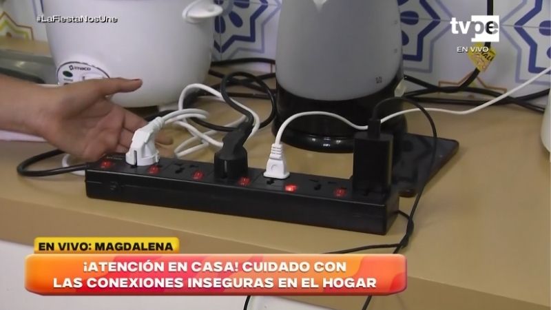 “Estas situaciones no se deberían hacer, utilizar un múltiple tipo cruz (…) sin embargo, no es seguro. Justamente es la fuente de muchos accidentes o siniestros que se presentan”, sostuvo. También alertó sobre las extensiones con cable mellizo: “No se debe utilizar, porque es una condición insegura”.