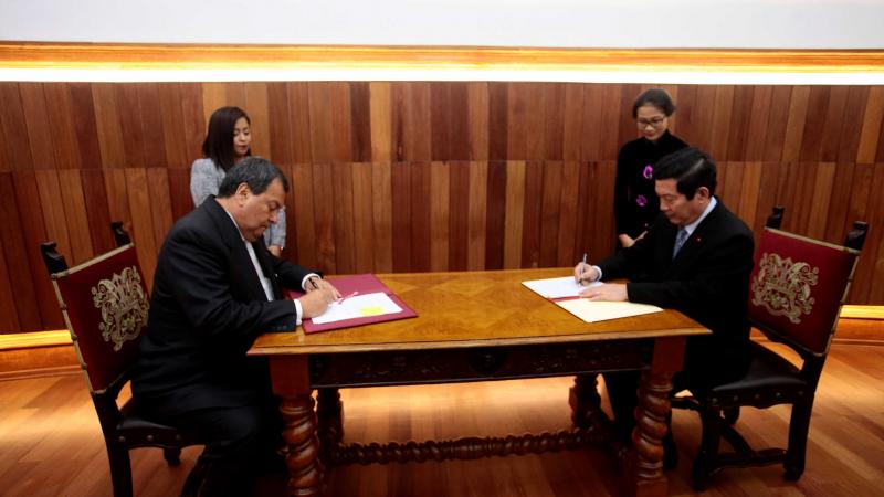 El documento fue rubricado, en una ceremonia realizada en la sede de Palacio de Gobierno, por el ministro de Cultura de la República del Perú, Jorge Nieto Montesinos, y el viceministro de Cultura, Deportes y Turismo de la República Socialista de Vietnam, Huynh Vinh Ai.