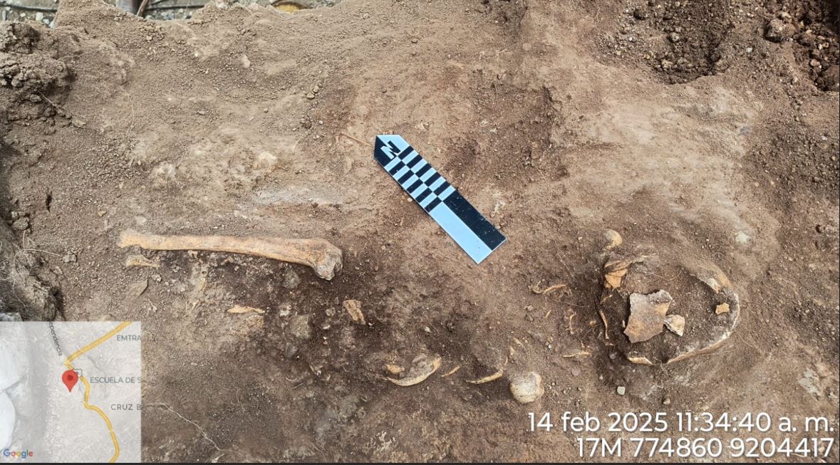 Durante la intervención, se identificaron restos óseos humanos (cráneo y extremidades inferiores) a una profundidad de aproximadamente 4 metros.