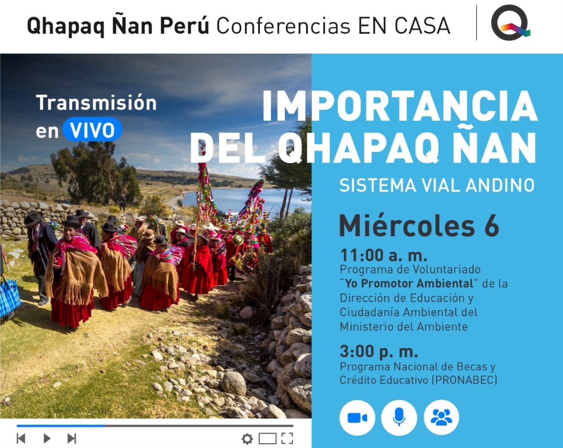 El área de Participación Comunitaria del Proyecto Qhapaq Ñan del Ministerio de Cultura (Mincul) viene realizando desde hace unas semanas una serie de videoconferencias gratuitas en español y quechua, las cuales son dirigidas a diversas instituciones nacionales e internacionales.