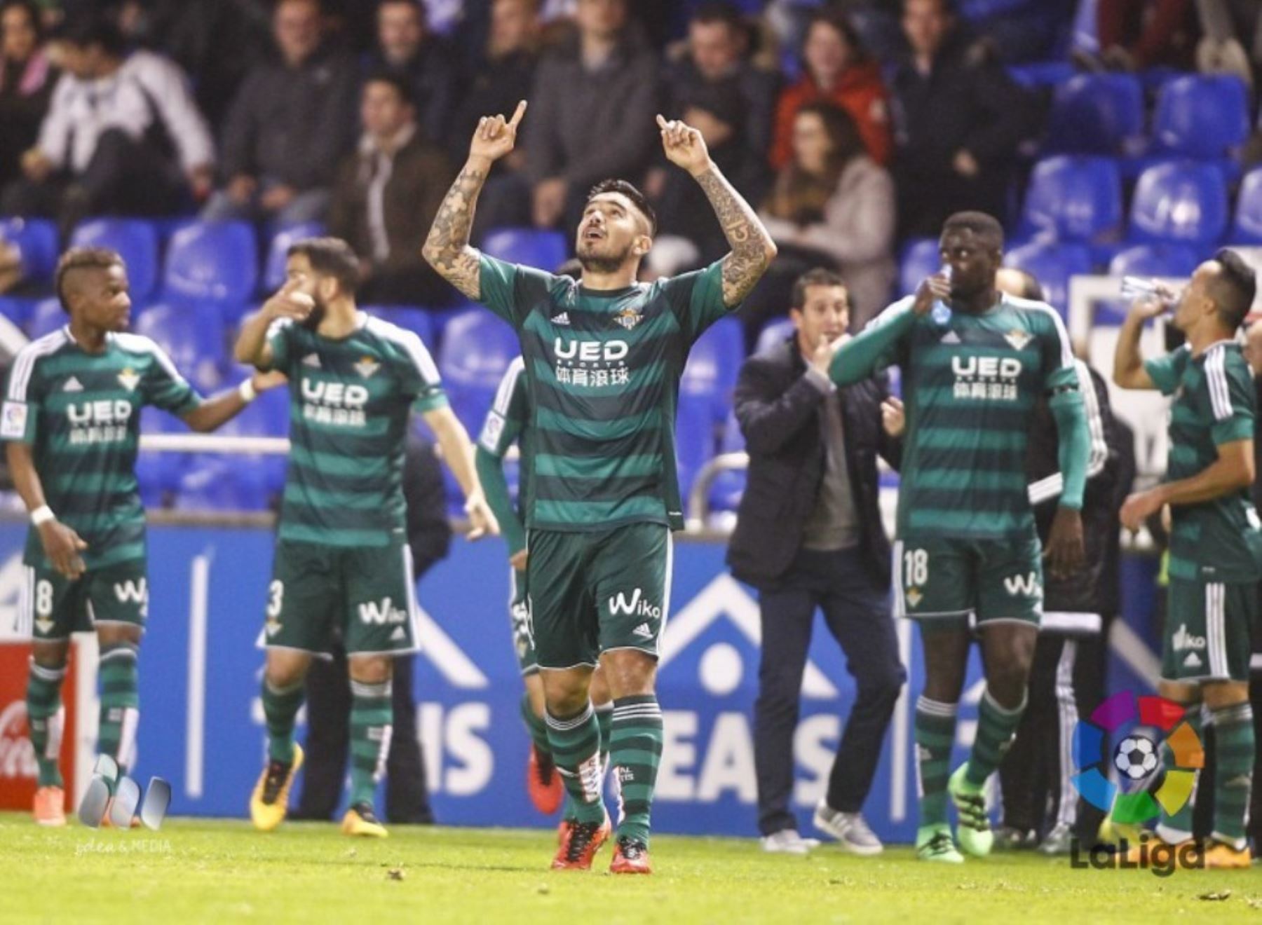 El lateral peruano Juan Manuel Vargas marcó su primer tanto en el Real Betis frente al Deportivo La Coruña, en la jornada 24 de la Liga española.