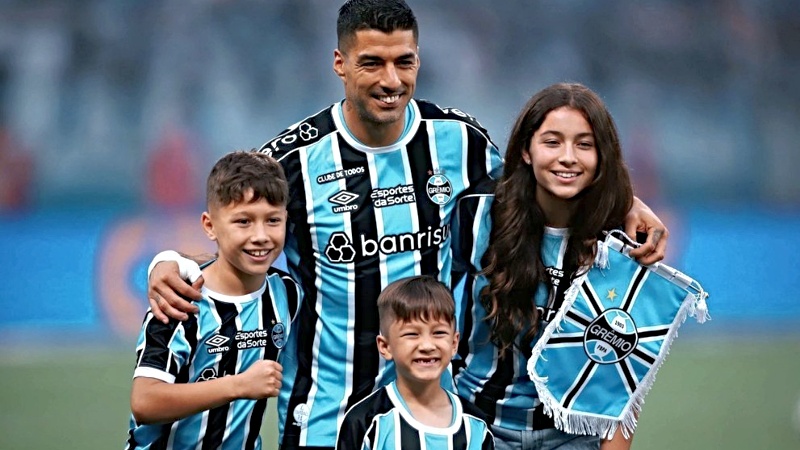 El uruguayo Luis Suárez, icono del fútbol sudamericano, se despide del Club de fútbol Gremio con un golazo. Luego estuvo acompañado de sus hijos. Foto:@soccergfbpa.