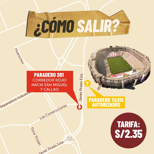 Además, en los exteriores del Monumental, los hinchas de la “U” podrán ubicar los paraderos de taxi autorizados por la ATU.