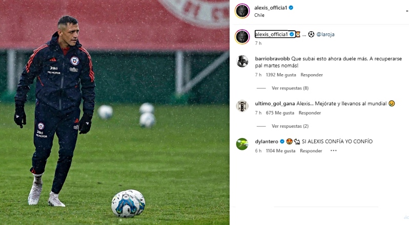 Uruguay vs Chile. Al mismo tiempo que confirmaron que Alexis Sánchez no estará en el duelo ante Uruguay en el debut de la selección de Chile en las eliminatorias sudamericanas, el delantero chileno publicó fotos de su entrenamiento bajo la lluvia, con una emotiva canción sonando en paralelo.