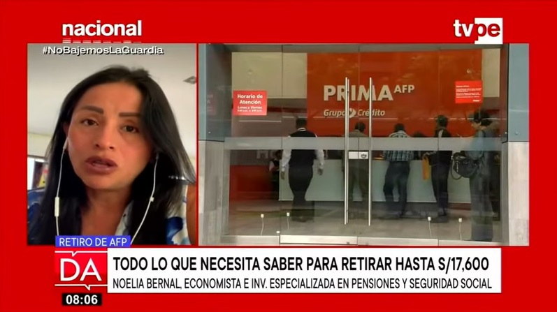 Noelia Bernal, economista e investigadora especializada en pensiones y seguridad social, señaló que si la gran mayoría de los afiliados decide retirar su dinero de las AFP (17,600 soles como monto máximo), implicaría un impacto mediano en la economía del país.