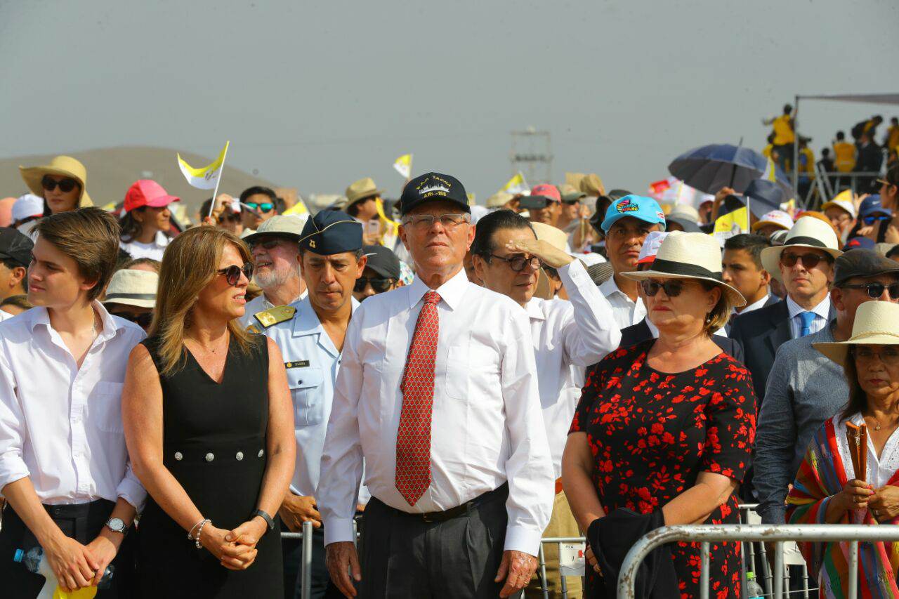 El presidente Pedro Pablo Kuczynski junto a su esposa asisten a la última actividad que sostendrá el papa Francisco en la base aérea de Las Palmas, en Santiago de Surco.