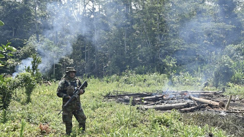 Militares quemando cultivo de hoja de coca con vinculación al narcotráfico. Foto: AFP.
