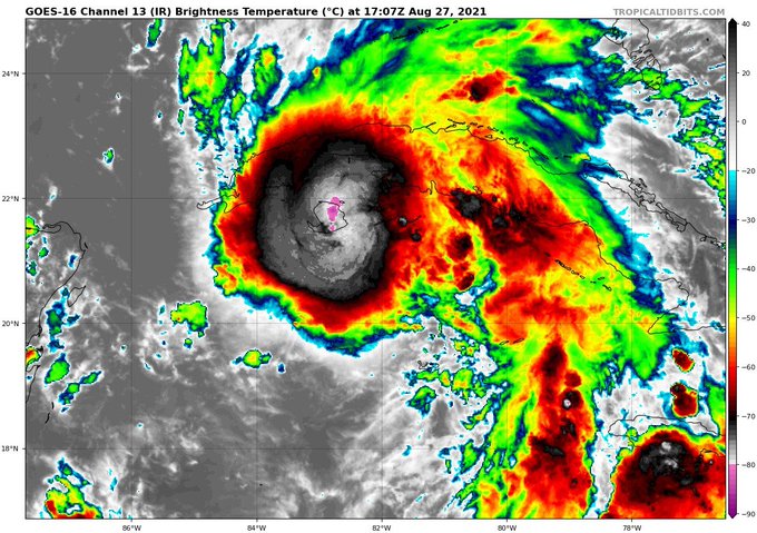 El ciclón convertido en huracán, actualmente se encuentra a 50 kilómetros de la isla cubana de la Juventud y a 270 kilómetros del extremo oeste de Cuba. Se está acercando a la Isla de la Juventud a una velocidad de 24 kilómetros por hora.