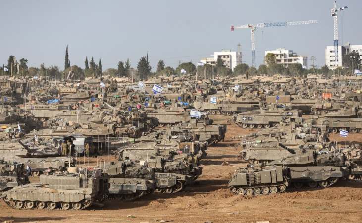 Los tanques de batalla del ejército israelí están posicionados en el sur de Israel, cerca de la frontera con la Franja de Gaza.Foto: AFP