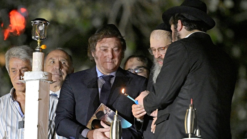 El presidente de Argentina, Javier Milei participó del encendido de la sexta vela de Jánuca (Hanukkah), una festividad judía, celebrada con la comunidad en Buenos Aires, dos días después de su investidura. En entrevistas anteriores a su mandato, el presidente Javier Milei ya había declarado su admiración por el pueblo judío e Israel.