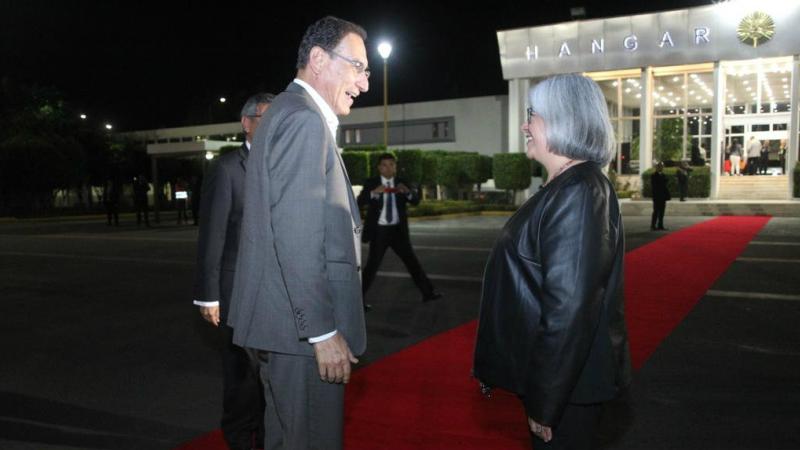 El Presidente de la República del Perú, @MartinVizcarraC, llegó a nuestro país para asistir a la Toma de Protesta del próximo Presidente de la República, @lopezobrador_. Le dio la bienvenida Graciela Márquez Colín, futura Secretaria de Economía. #1Dic ?? pic.twitter.com/qfFSSboUEV