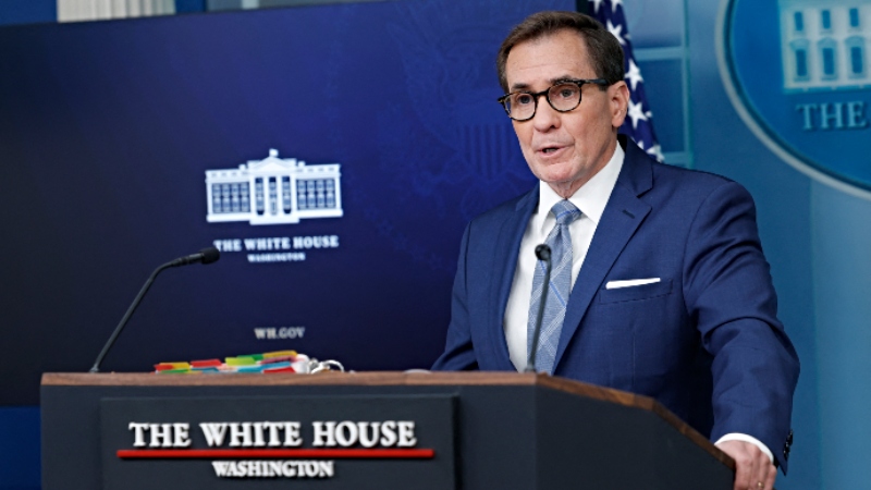 John Kirby en conferencia detallando sobre misiles usados entre Rusia y Corea del Norte. Foto: AFP.