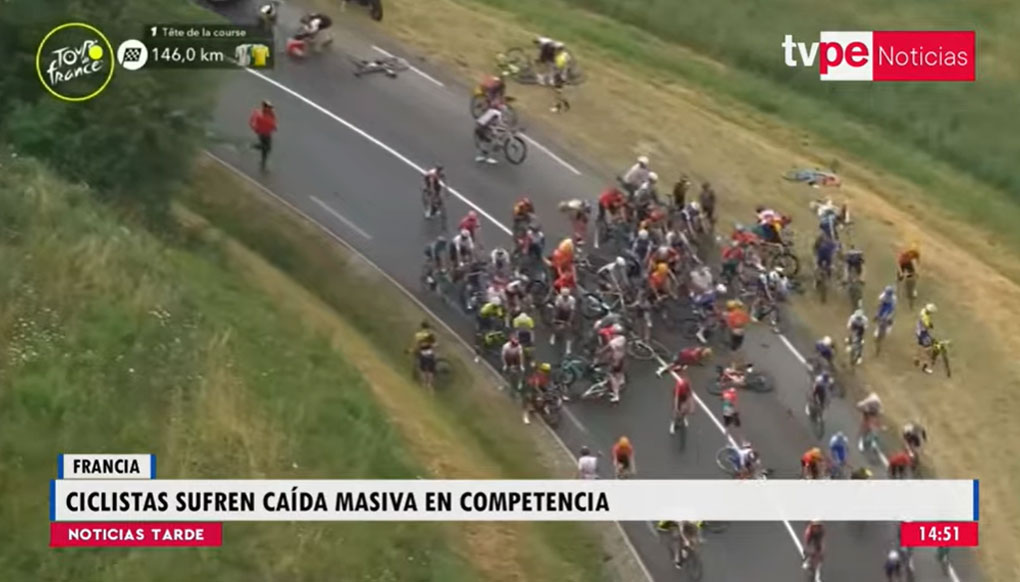 A inicios de la competencia, decenas de ciclistas sufrieron una caída masiva y muchos de ellos resultaron heridos.